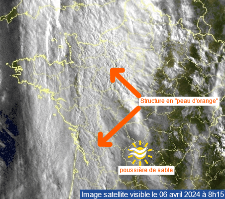Structure en "peau d'orange" observée ce 06 avril 2024 au matin - Canal Visible MeteoCiel