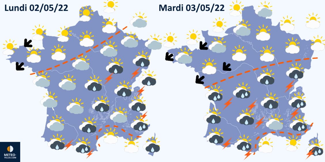 Prévisions du temps pour les lundi 2 et mardi 3 mai 2022 - Météo Villes
