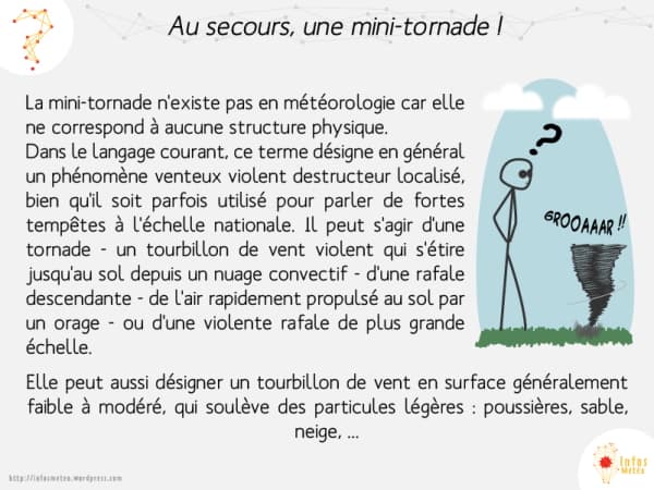 Infographie ironisant sur l'emploi du terme "mini-tornade" - via Infos Météo