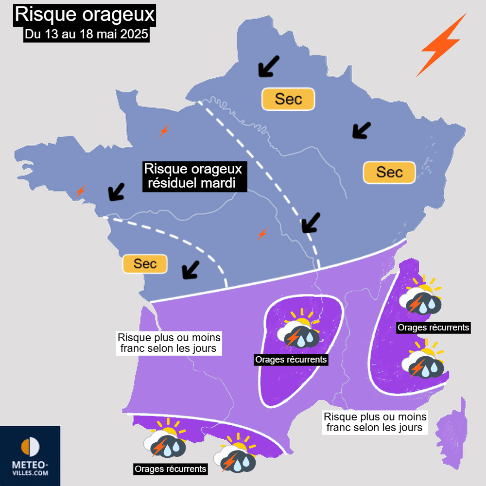 Estimation du risque orageux sur la France du 13 au 18 mai 2025 – Météo-Villes