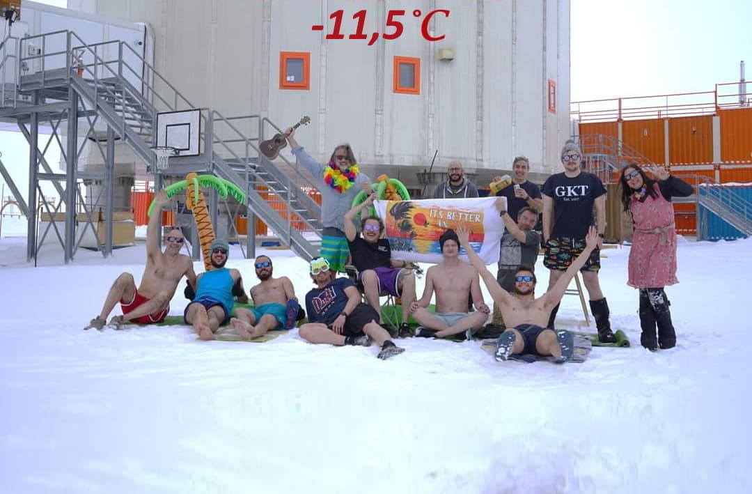 Les scientifiques de la base Concordia (Antarctique) sous -11,5°C le vendredi 18 mars 2022 - via Pete D. Akers
