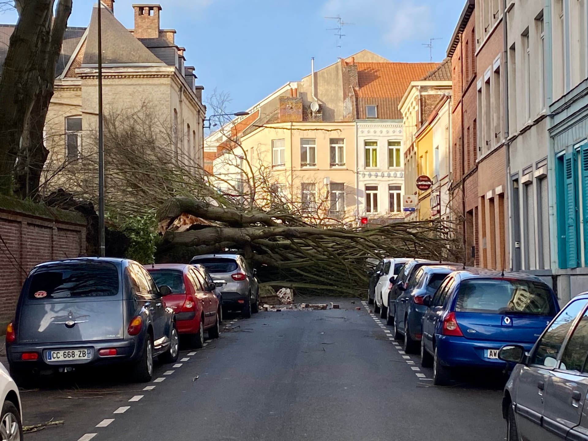 Chute d’un arbre centenaire à Lille dans la rue Saint-Gabriel le 18 février 2022 - La Voix du Nord via @Hessebez
