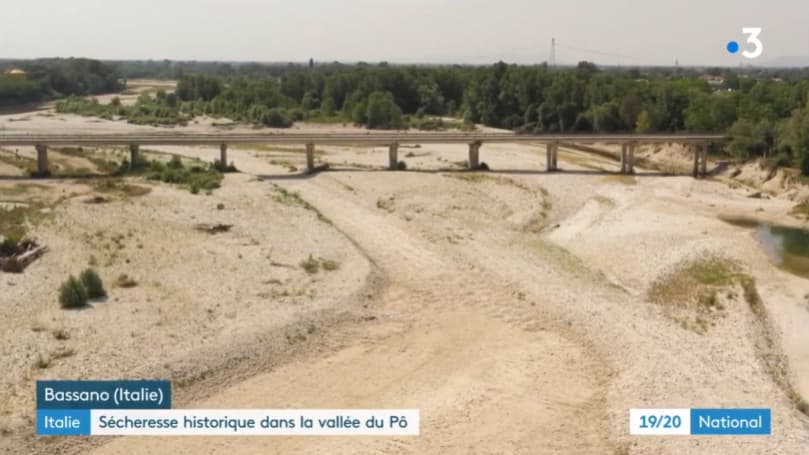 Le Pô subit la sécheresse et affiche un niveau historiquement bas début juillet 2022 - via France 3