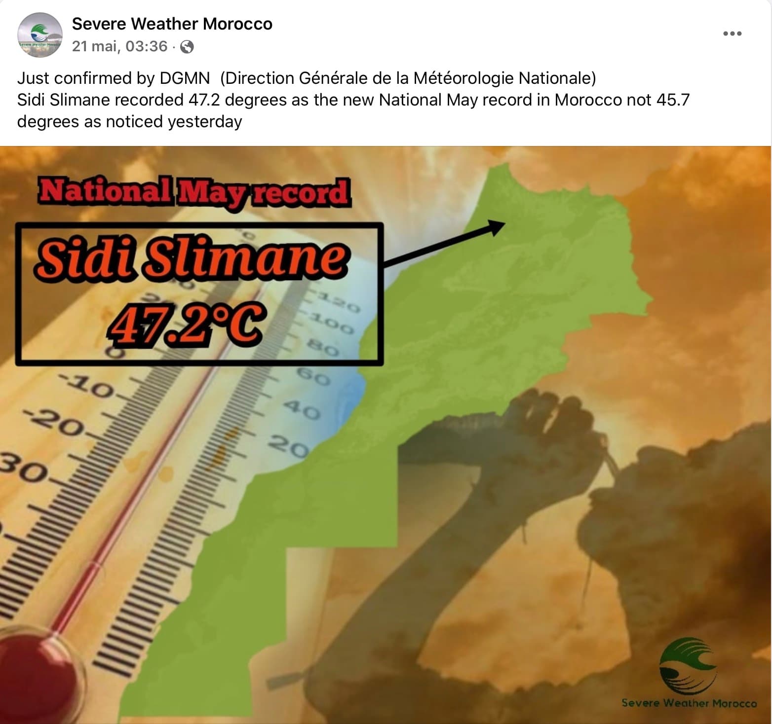 Nouveau record national de chaleur pour un mois de mai au Maroc le 20 mai 2022 – Via Severe Weather Morocco