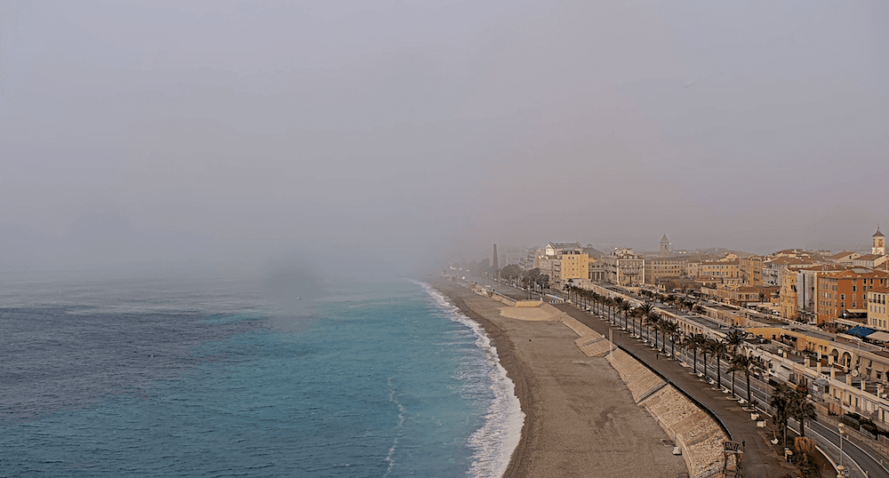 Arrivée de l'orage par l'ouest de Nice entre 7h23 (en haut) et 7h28 (en bas) - caméra Viewsurf
