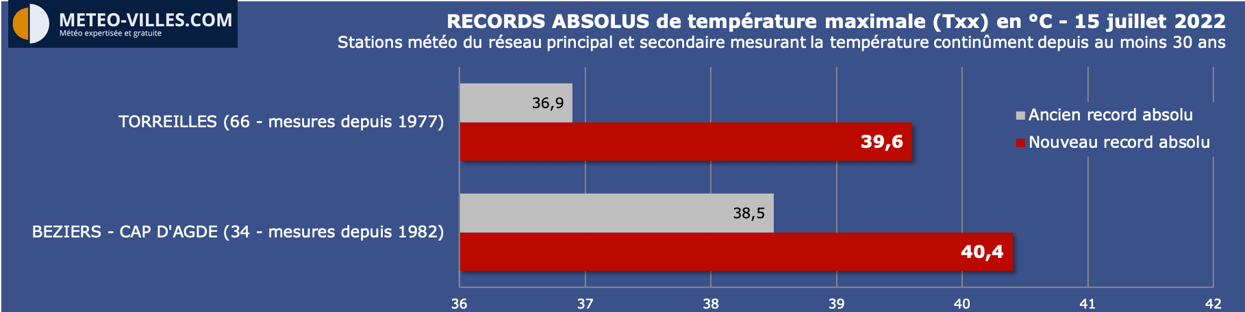- 41.0°C à Fitou (Aude)