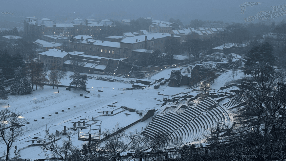Neige au théâtre gallo-romain de Fourvière à Lyon (69) le mardi 13 décembre 2022 – photo pour www.meteo-lyon.net