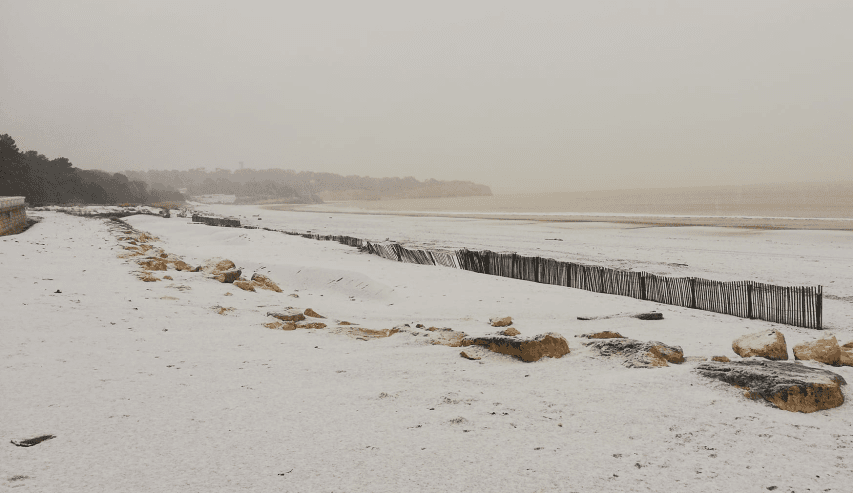 Neige sur la plage de Ouistreham (14) ce mercredi 14 décembre 2022 - photo Ouistreham Riva-Bella