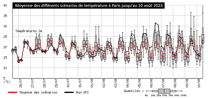 Moyenne des différents scénarios de température à Paris du 26 juillet au 10 août 2023 - via meteociel.fr