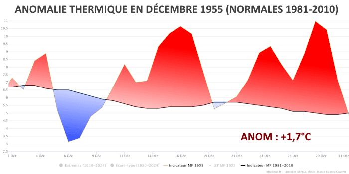 Anomalie thermique (normale 1981-2010) en décembre 1955 - infoclimat.fr