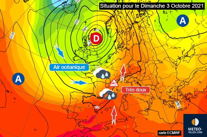 Situation à échelle continentale pour le dimanche 3 octobre 2021 - via ECMWF