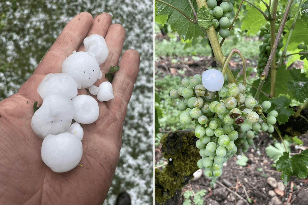 Dégâts dans les vignes à Eilloux (01) en après-midi du lundi 24 juillet 2023 - via Domaine du Clos d'Arvières
