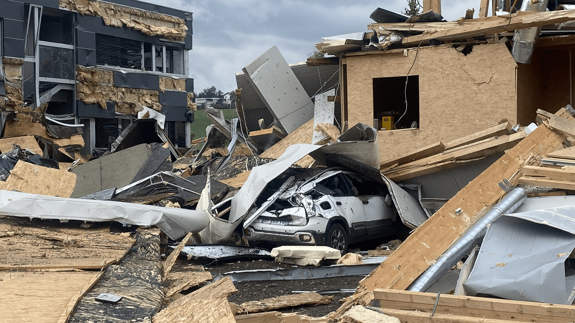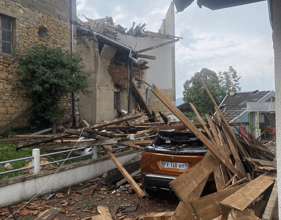 Après avoir traversé la frontière, l'orage a balayé la commune suisse du Locle juste avant la mi-journée. Les rafales de vent ont alors atteint des vitesses encore plus importantes avec des dégâts tout bonnement spectaculaires. Les bâtiments les moins résistants ont été fortement endommagés et de nombreux débris ont été projetés par l'orage, pulvérisant certains véhicules. Il est presque miraculeux qu'il n'y ait pas eu de victime dans cette commune.