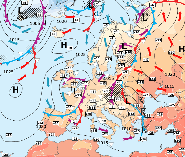 + Une goutte froide d’altitude s'installe progressivement sur la France avec beaucoup d’humidité et d'air frais.