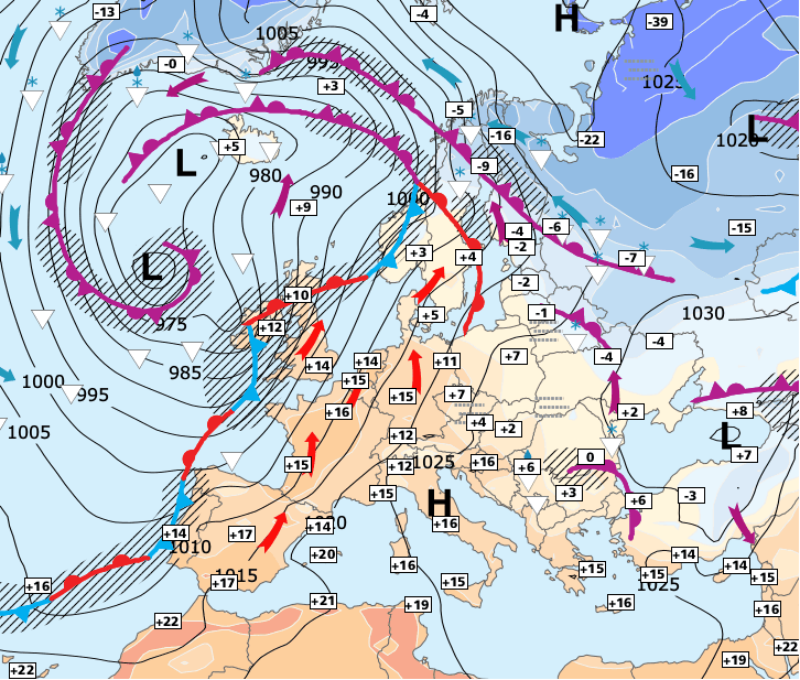+ Quel contraste de température avec le week-end dernier ! D’un courant polaire directement venu de Russie, nous sommes passés à une influence saharienne ! Et la différence entre samedi dernier au matin et ce samedi après-midi dépasse parfois les 25°C !