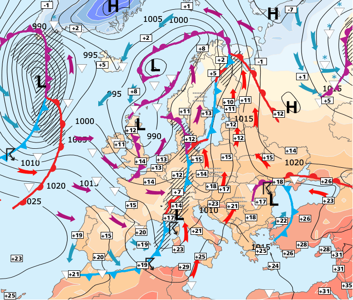 + La douceur venue des Açores et des Canaries envahira alors la France, et les températures deviendront très élevées pour la saison.